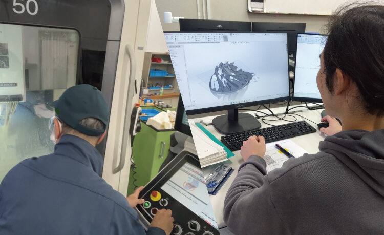 設計部門に関わる2D/3DCAD技術、製造部門に関わる5軸マシニングセンタなどのNC工作機械及びCAD/CAMによる機械加工技術を習得できます。